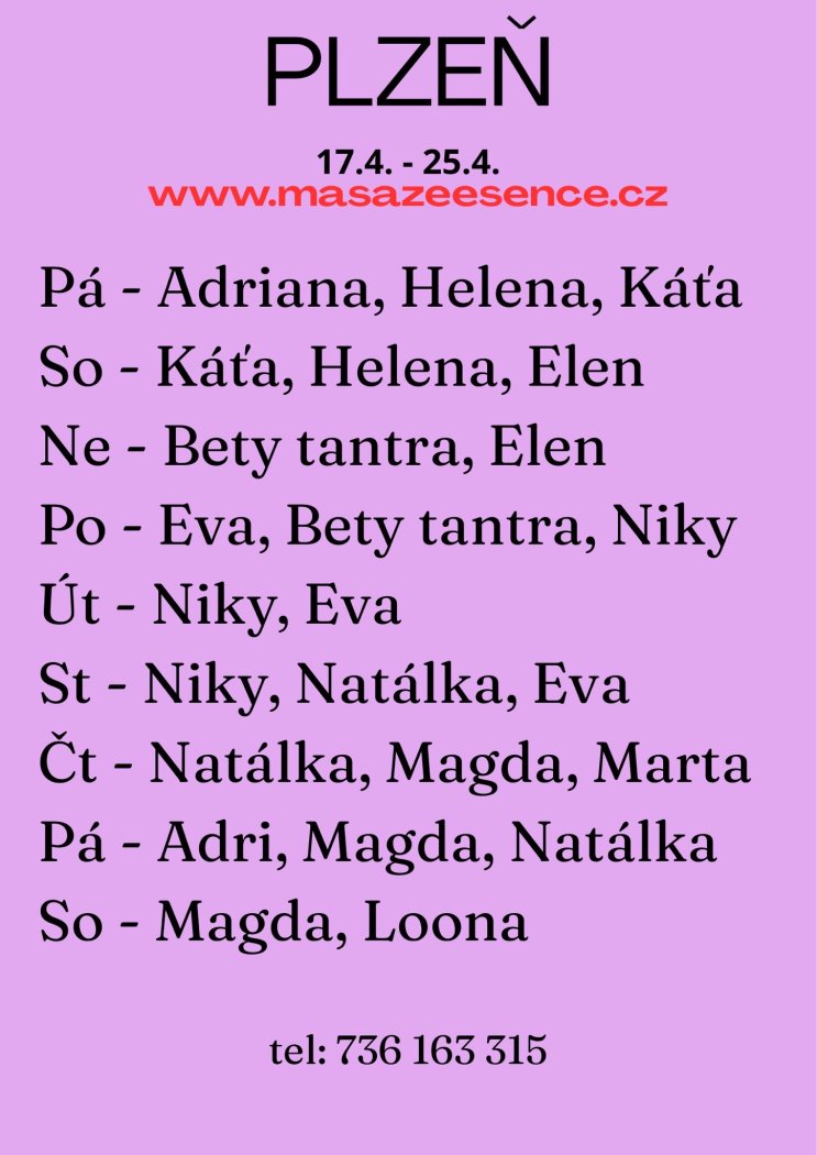 | Pátek | Na dotaz |